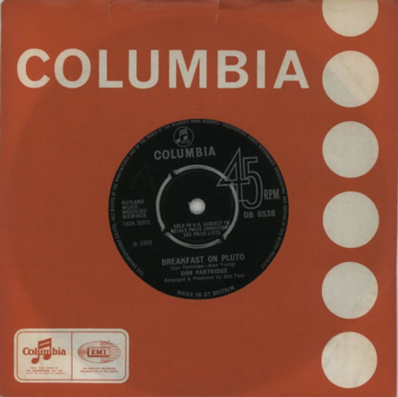 DON PARTRIDGE Breakfast On Pluto (1969 UK 7" vinyl single