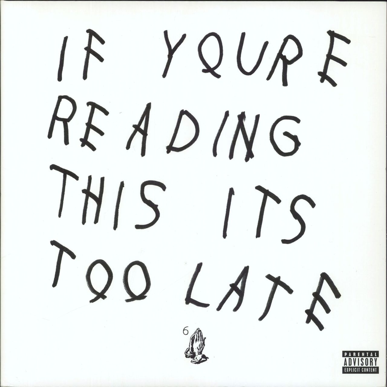 DRAKE If You're Reading This It's Too Late (2016 UK/EU 19-track double LP, a commercial mixtape by the Canadian rapper originally intended to be released for free on DJ Drama's website Datpiff before Young Money intervened and made it available exclusively through purchase on Itunes and Amazon Music the year before this vinyl pressing was released. Although not spawning any major hits, this is arguably his best release according to some fans and has built a cult status amongst hiscatalogue. This release contains 2 bonus tracks not available on the digital release being 'How Bout Now' and 'My Side'. Housed in a gatefold jacket with lyrics on the inside. The sleeve shows a little area of discolouring and a light crease but otherwise the sleeve remains in Excellent condition. The vinyl grades Near Mint with no obvious signs of wear or play)