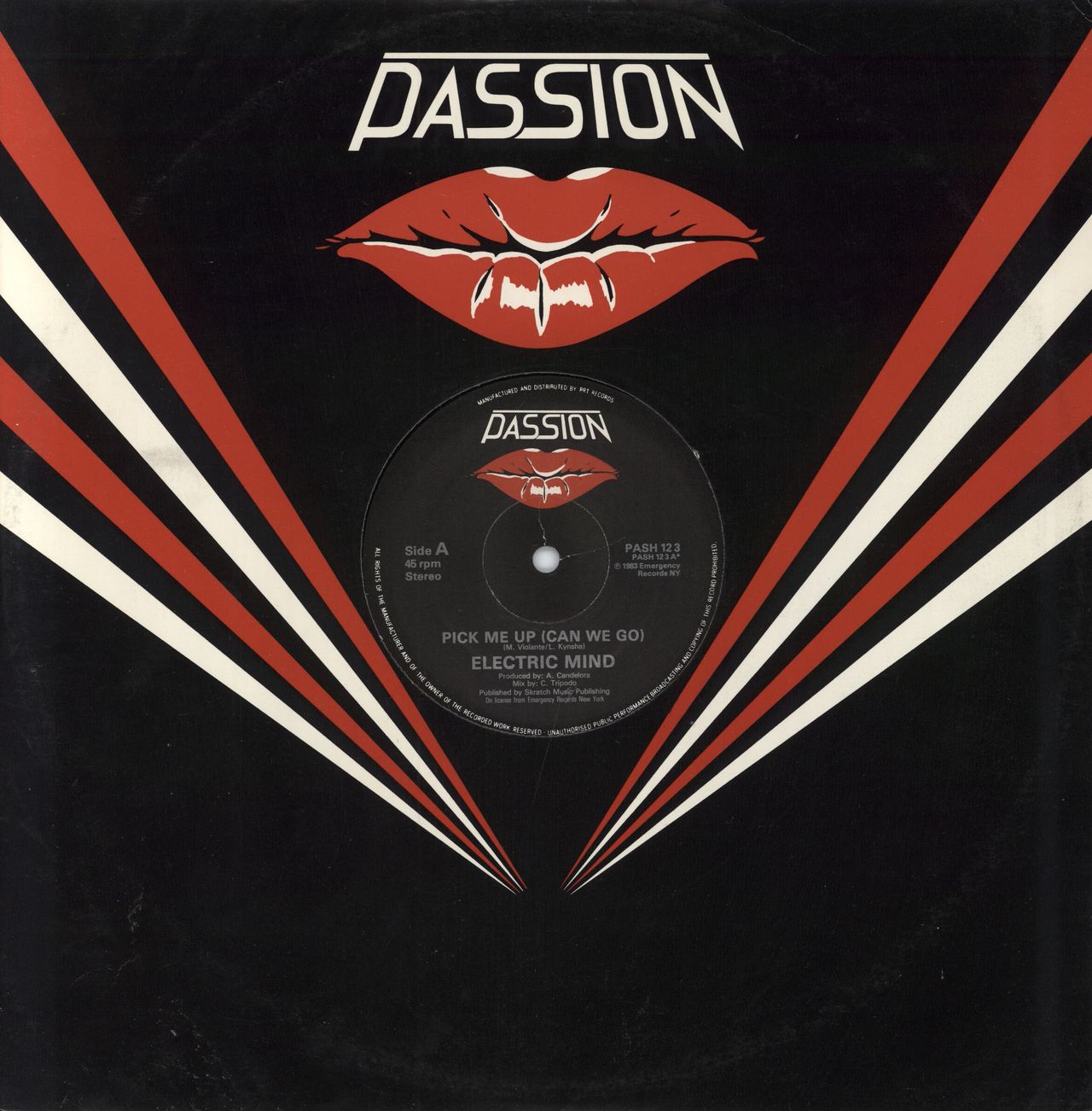 ELECTRIC MIND Pick Me Up (Can We Go)/ Zwei (Dub Version) (Italo Disco 1983 UK 2-track 12" single on the Passion label [Sun Palace, Precious, R.E.Q.], die-cut company sleeve. The sleeve shows the odd faint crease from ring wear & the vinyl is Excellent to Near Mint with few signs of play PASH123)