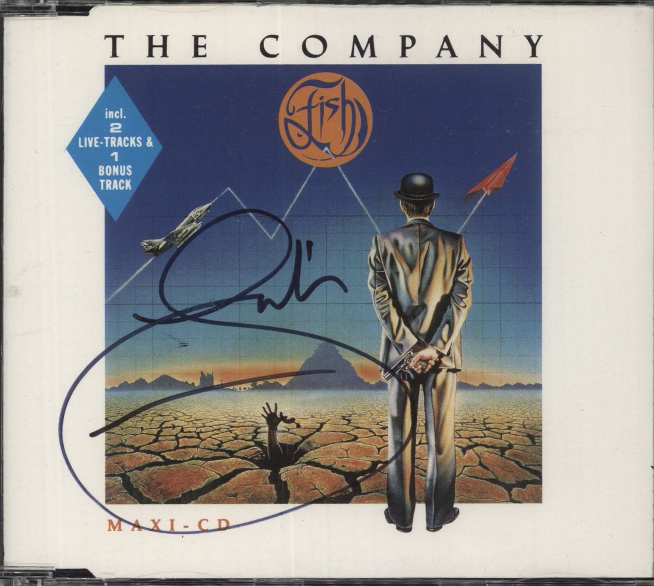 FISH The Company (1990 German only 4-track CD single including Album Version and Demo Version; plus Family Business and Punch & Judy - both recorded live at the Ahoy, Rotterdam on 10 March 1990, great picture sleeve. Autographed on the front in black marker pen, by Fish himself!)