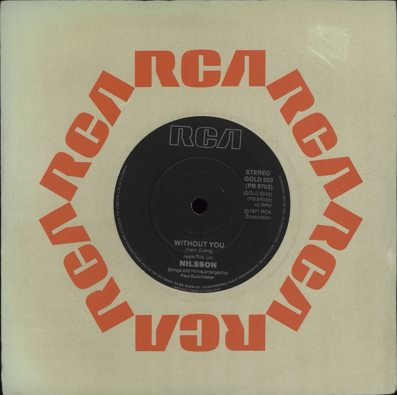 HARRY NILSSON Without You (1980 UK 7" vinyl single, also