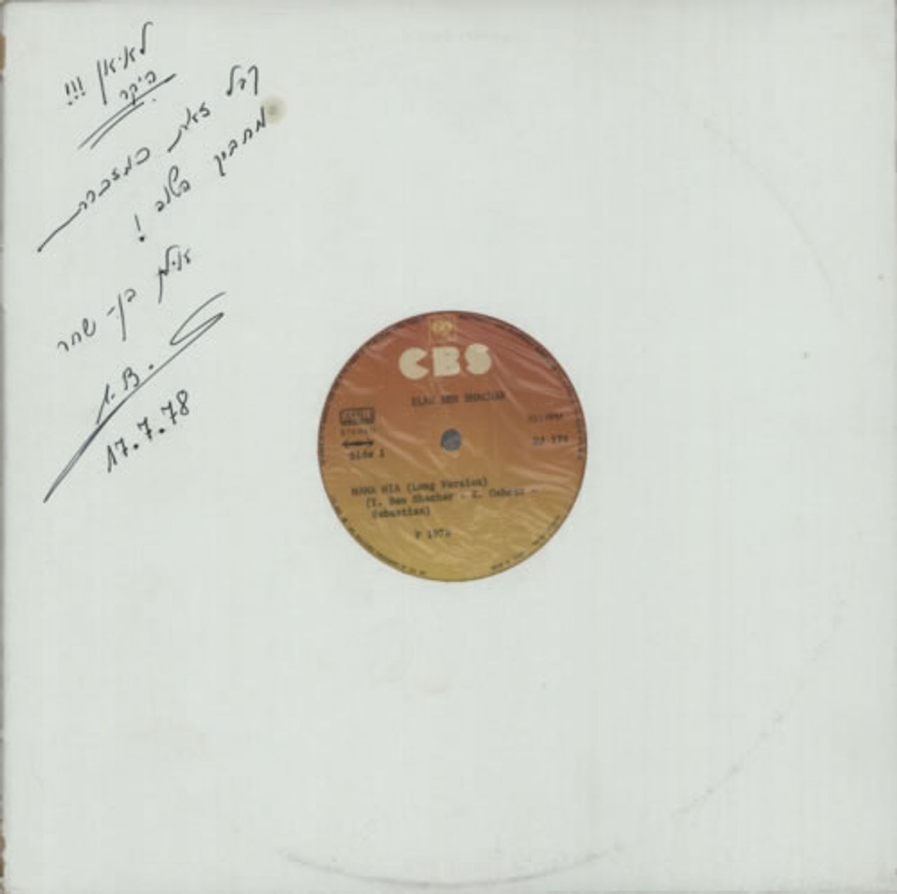 Ilan Ben Shachar on the front of the sleeve in black marker