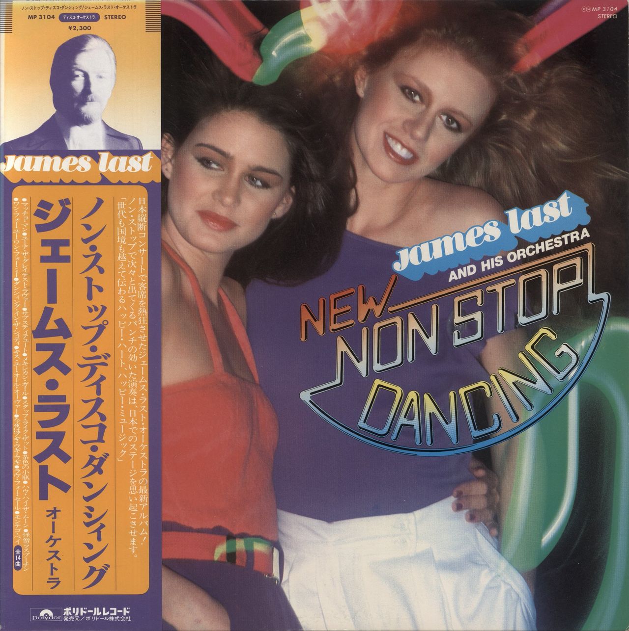 JAMES LAST New Non Stop Dancing (Japanese 12-track promo sample vinyl LP with custom black on white Polydor labels, housed in a pasted picture sleeve with Japanese biography insert and picture obi-strip. The sleeve and Obi-strip show very little wear and the vinyl is near Mint MP3104)