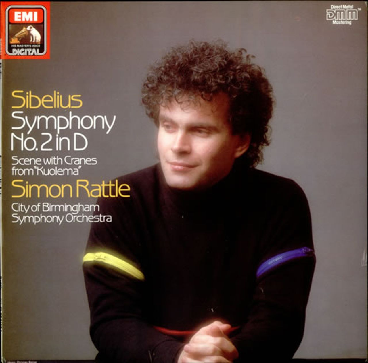 CITY OF BIRMINGHAM SYMPHONY ORCHESTRA conducted by SIMON RATTLE Symphony No. 2 in D / Scene With Cranes from 'Kuolema' (1984 UK Direct Metal Mastered stereo LP, pressed in Germany for the UK market, picture sleeve with liner notes in English and German. The sleeve shows minimal shelfwear & the vinyl is flawless EL2701601)