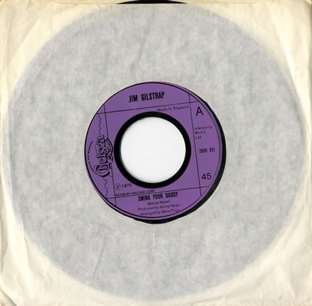 JIM GILSTRAP Swing Your Daddy (1975 UK wide centred injection moulded jukebox only vinyl 7" for the single release, also including Part 2, plain company die cut paper sleeve)