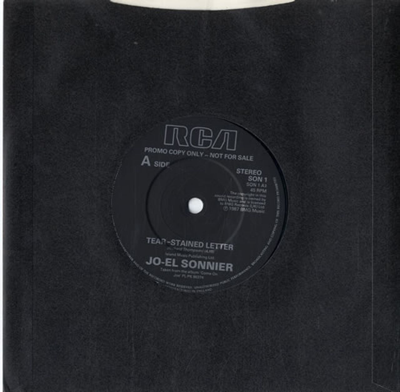 JO-EL SONNIER Tear-Stained Letter (1987 UK 7" injection moulded promotional vinyl single, also including So Long Baby Goodbye, plain die-cut sleeve SON1)