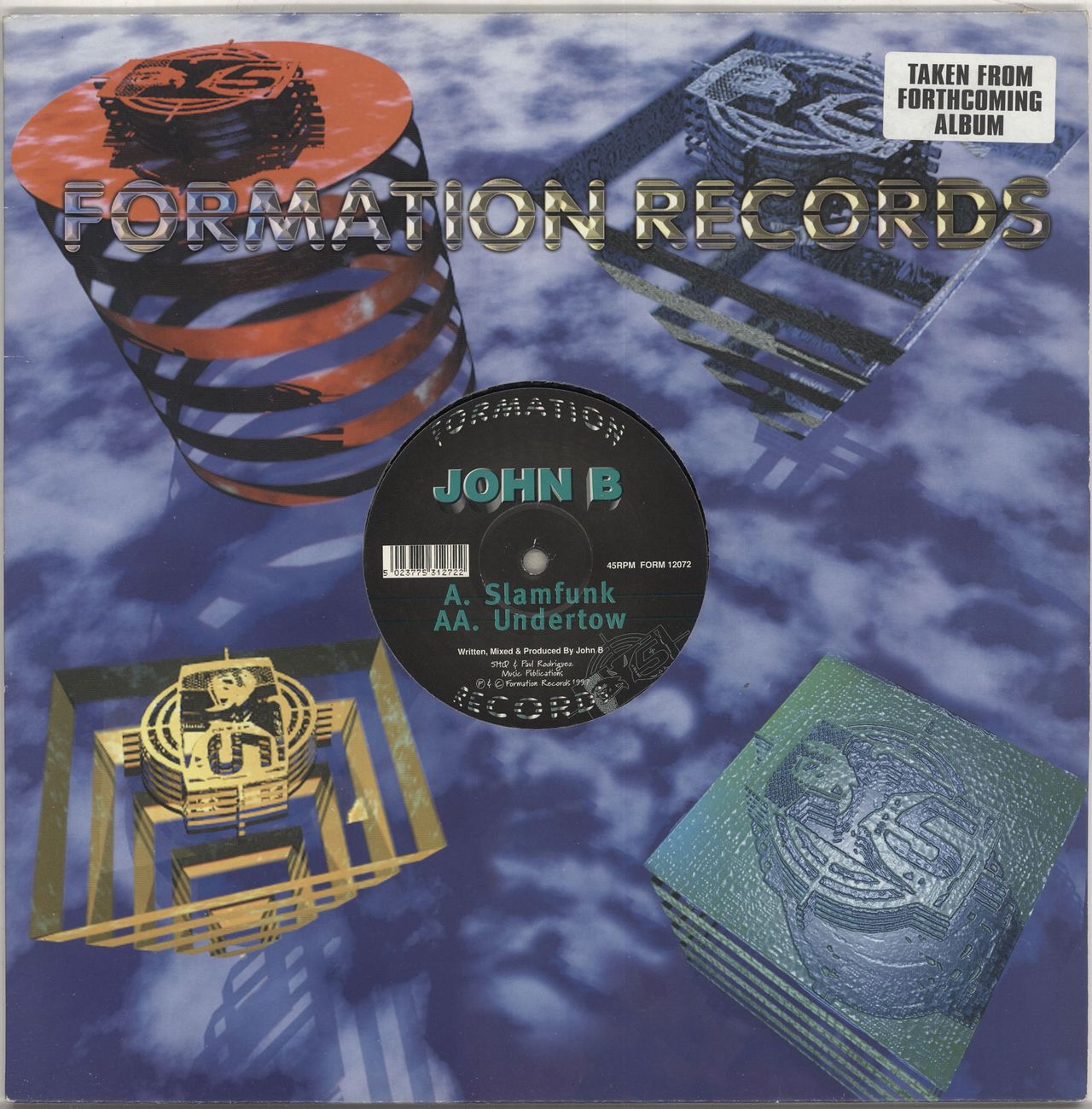JOHN B Slamfunk (1997 UK 12'' single, also includes Undertow, housed in a hype-stickered die-cut card sleeve. The sleeve shows just light ageing, with some light corner wear, whilst the vinyl displays a few faint cosmetic scuffs but appears barely played - a stone cold D&B banger! AMX737)