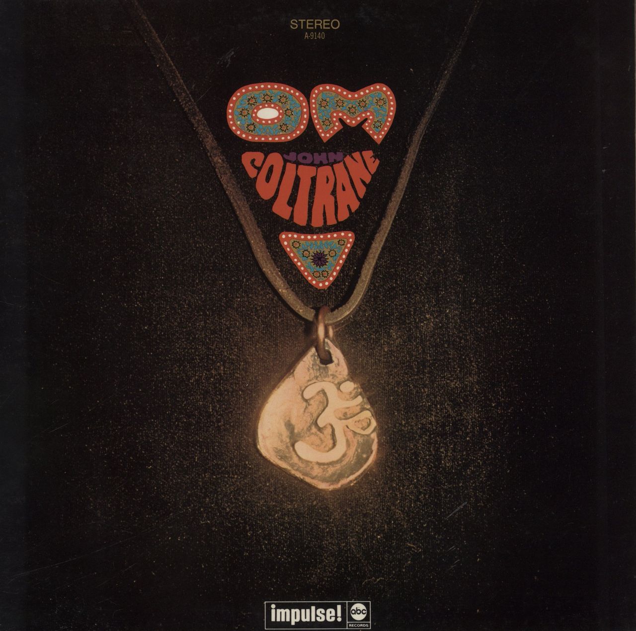 JOHN COLTRANE OM (1968 Canadian 2-track vinyl LP on the black Impulse! label, the legendary saxophonist's 2 part album, released posthumously, based on the sacred syllable including chanting derived from spiritual texts, laminated pasted single pocket picture sleeve printed in USA, complete with rare fold-out linernotes. The sleeve shows minimal wear and the vinyl is Near Mint - a really beautiful copy! A-9140)