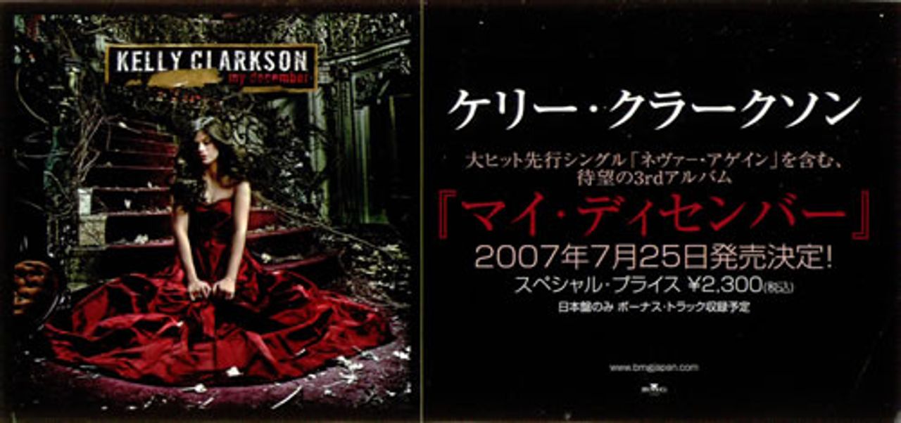 KELLY CLARKSON My December (2007 Japanese set of two promotional-only stickers for Kelly's amazing third album, measuring approx. 7" x 3" the pair remain unused and ideal for display!)