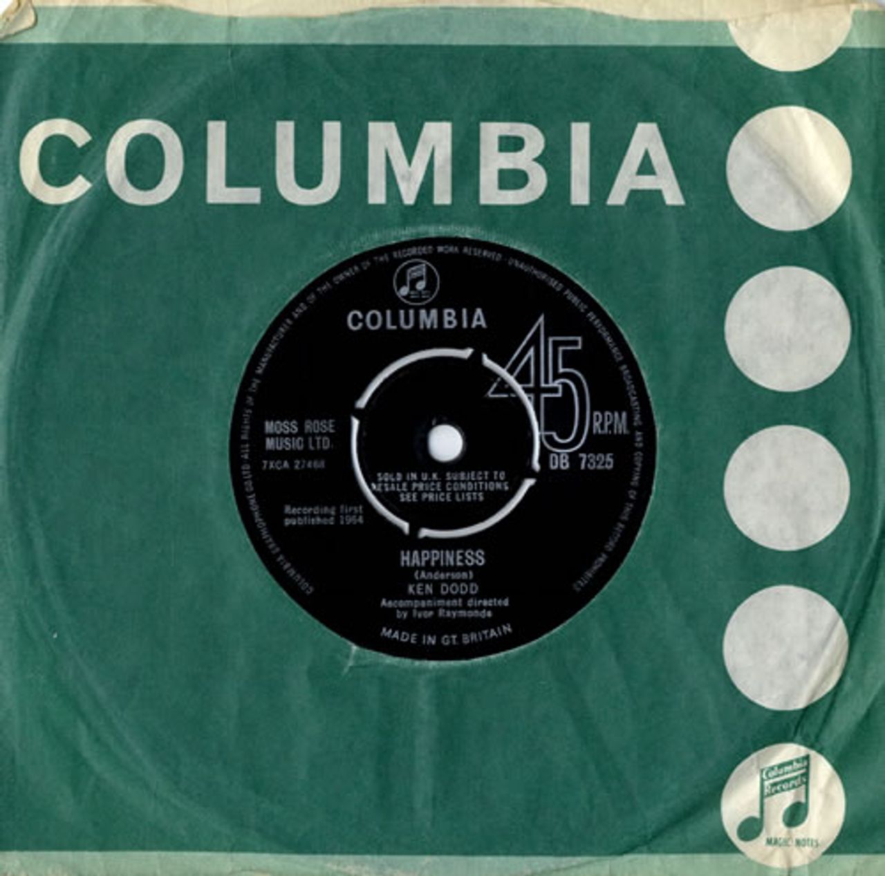 KEN DODD Happiness (1964 UK 7" vinyl single with intact four prong centre, also including All Of My Life [O Toi La Vie], record company die cut paper sleeve DB7325)