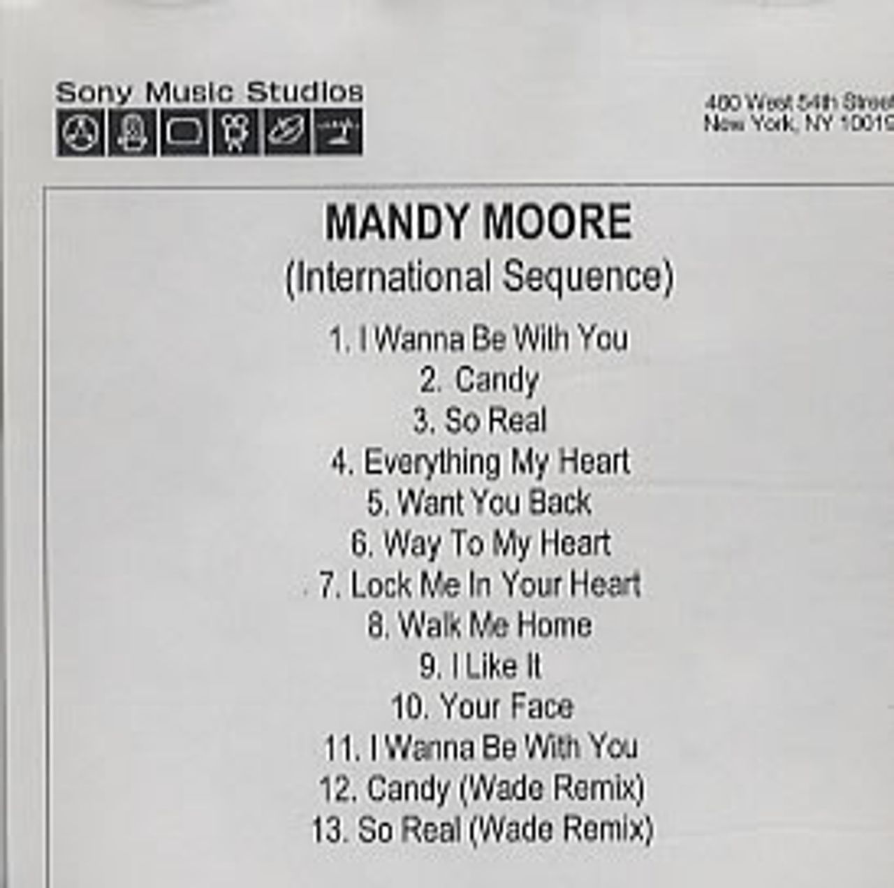 Mandy Moore (International Sequence) US CD-R acetate