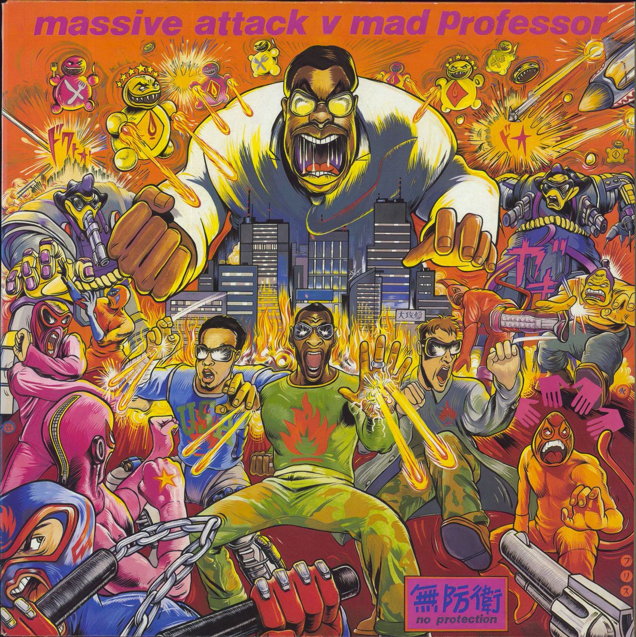 MASSIVE ATTACK vs MAD PROFESSOR No Protection (1995 UK 8-track LP, invoking the time-honoured Jamaican tradition of the dub album, reworked by a mixing board auteur Mad Professor, fantastic Stephen Bliss artwork picture sleeve. The sleeve shows minimal shelfwear & the vinyl remains in near 'as new' condition with few signs of play WBRLP3)