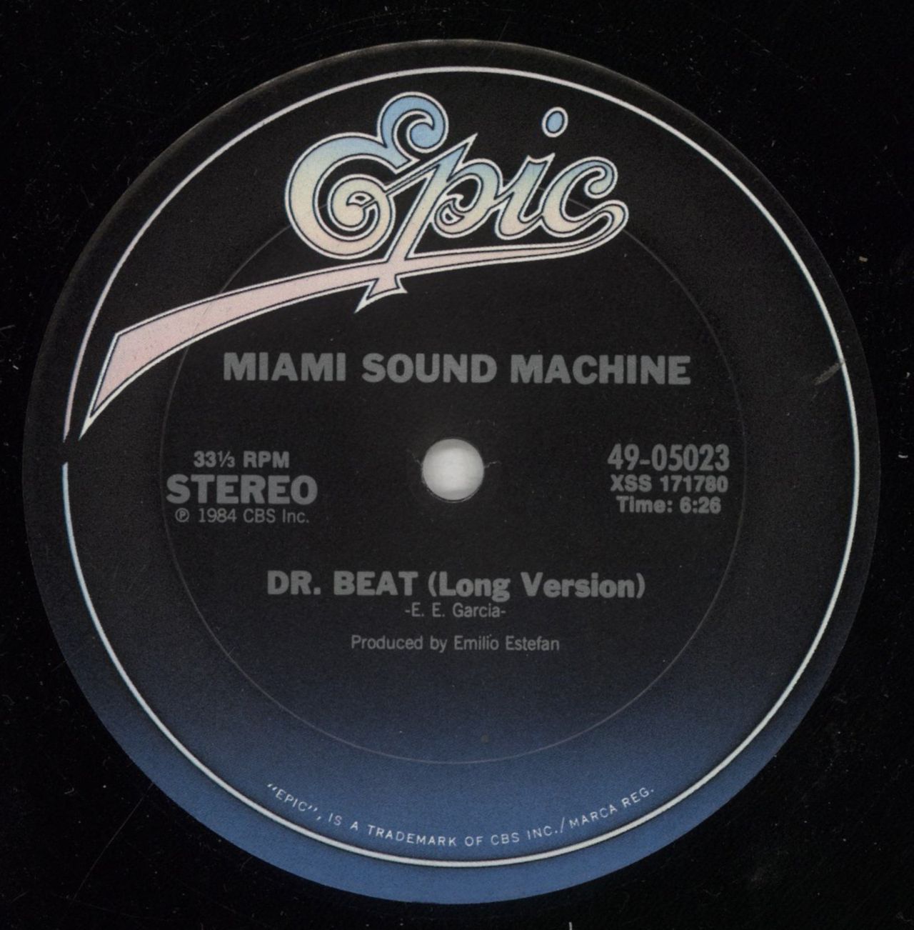 MIAMI SOUND MACHINE Dr Beat (1984 US 12" featuring a full run time of 6:26 as show on the labels, also featuring a 5:12 instrumental version housedin a plain blac company sleeve. The vinyl remains in excellent condition)