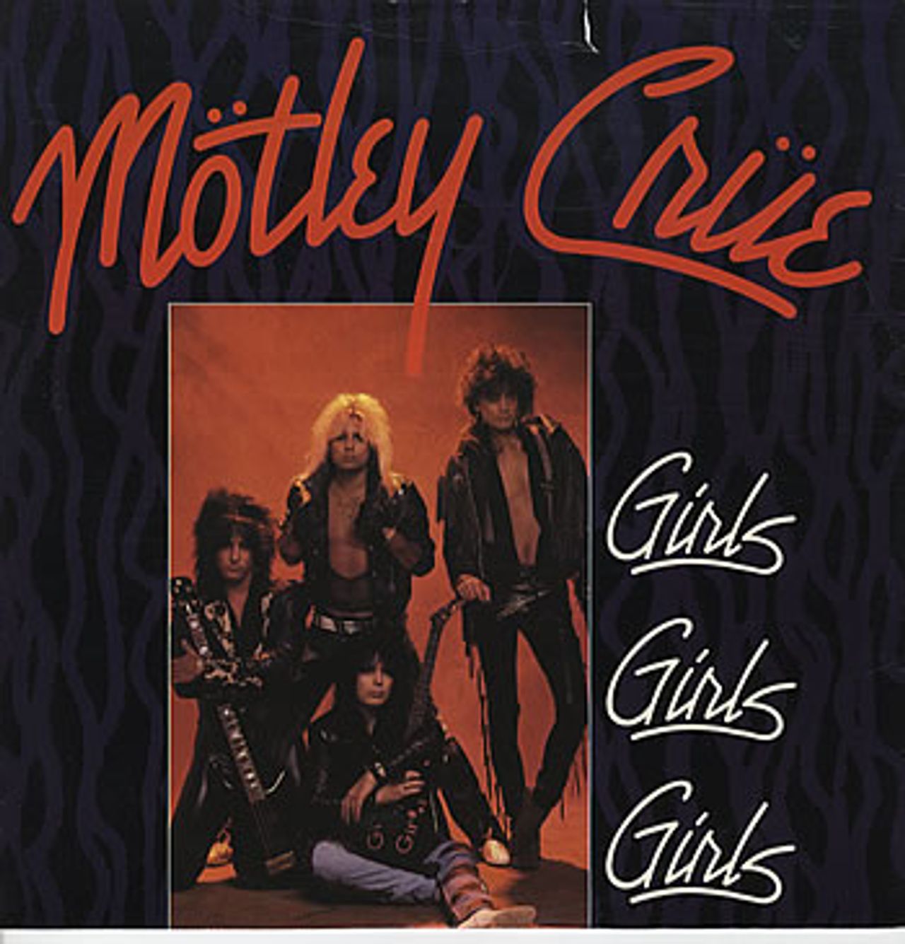 MOTLEY CRUE Girls Girls Girls (1987 UK 3-track 12" single, also including Sumthin' For Nuthin' and a live version of Smokin' In The Boys Room recorded at Fresno, California in 1986, full colour picture sleeve. The sleeve has some light edgewear and ringwear, but the vinyl looks barely played EKR59T)
