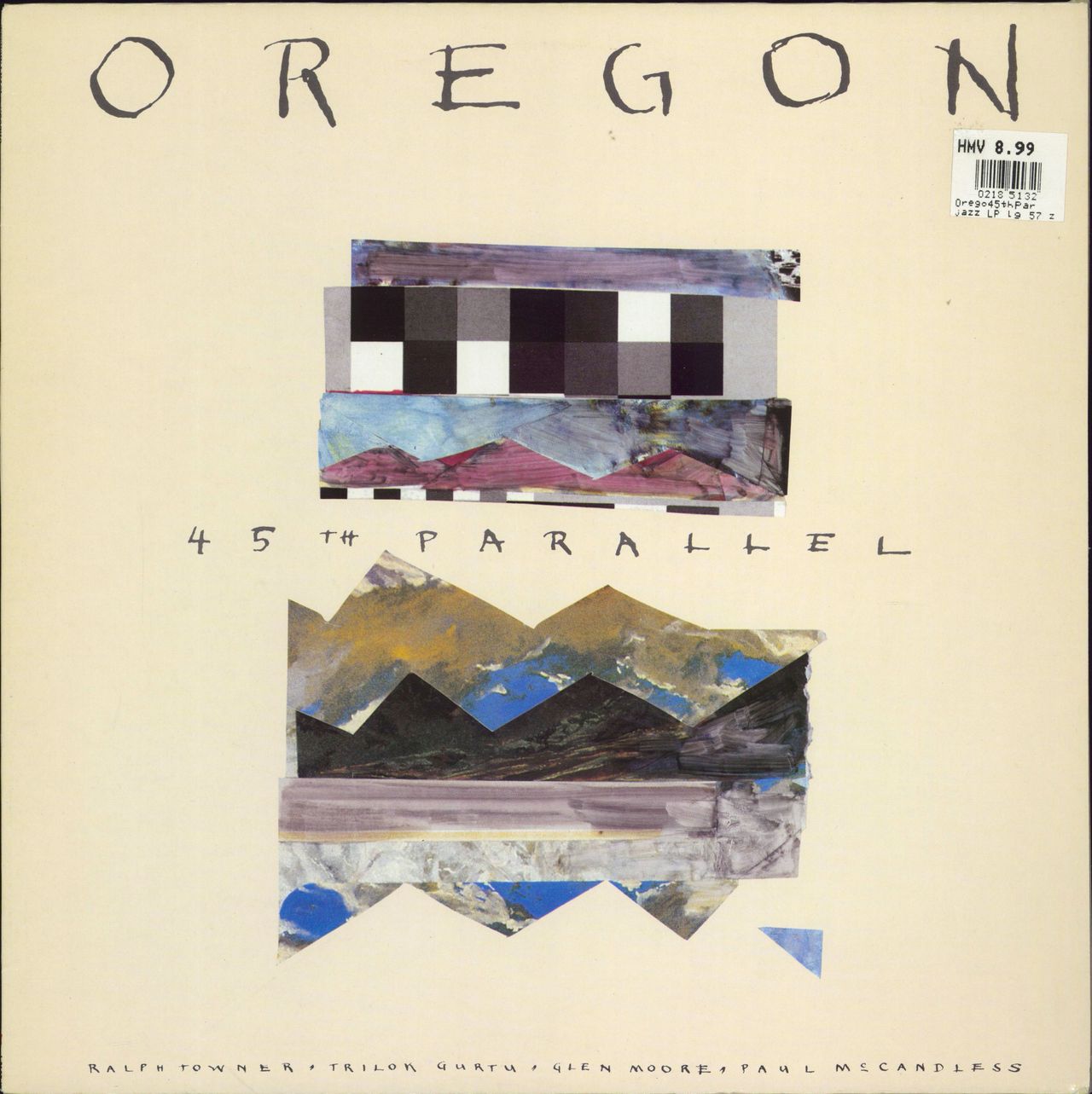 OREGON 45th Parallel (1989 UK 10-track LP on the black VeraBra label, matte picture sleeve. Featuring Ralph Towner, Trilok Gurtu, Glen Moore and Paul McCandless. The vintage price stickered sleeve shows some minimal wear & the vinyl remains in Excellent condition with few signs of play VBR20481)