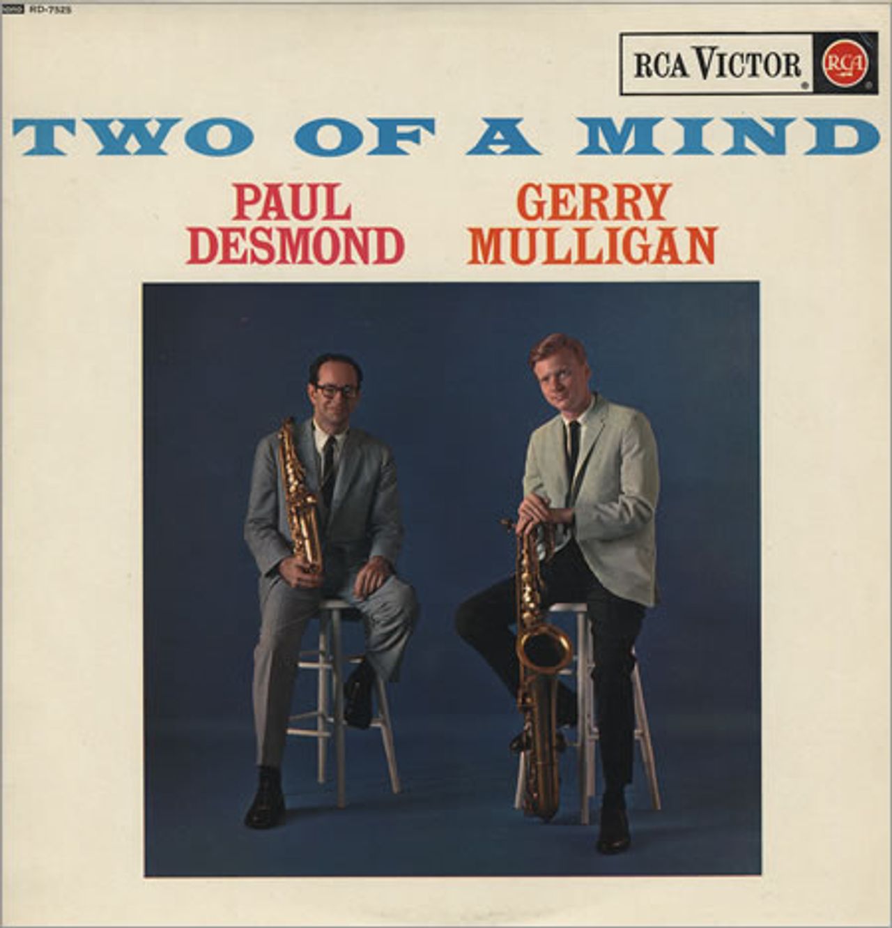 PAUL DESMOND & GERRY MULLIGAN Two Of A Mind (1962 UK 6-track deep groove mono LP on the 'silver spot' RCA label, a stunning collaborative album between the alto & baritone modernists, guest starring Jim Hall on guitar, front laminated flipbackpicture sleeve. The delicate sleeve is Excellent with the odd light crease from ring wear & the vinyl is clean & in Excellent condition with just a few spindle marks to show play RD-7525)