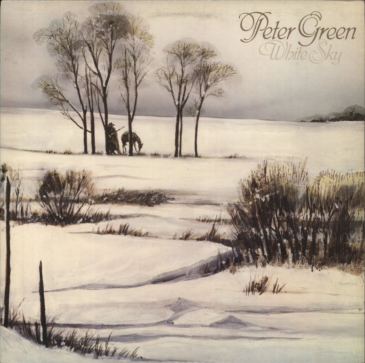 PETER GREEN White Sky (1982 Canadian 9-track vinyl LP, pressed on Green Vinyl, [which is visible when held to light]. Comprising of songs such as: 'It's Gonna Be Me', 'Indian Lover' and many more! Housed in aslightly textured glossy sleeve. The sleeve shows some discoloration and light edgewear, whilst the vinyl shows a few signs of play; remaining in Excellent condition SPL1046)