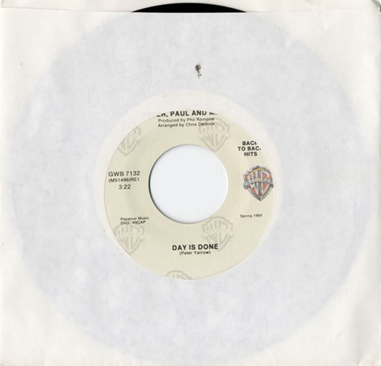 Peter Paul & Mary Day Is Done US 7" vinyl