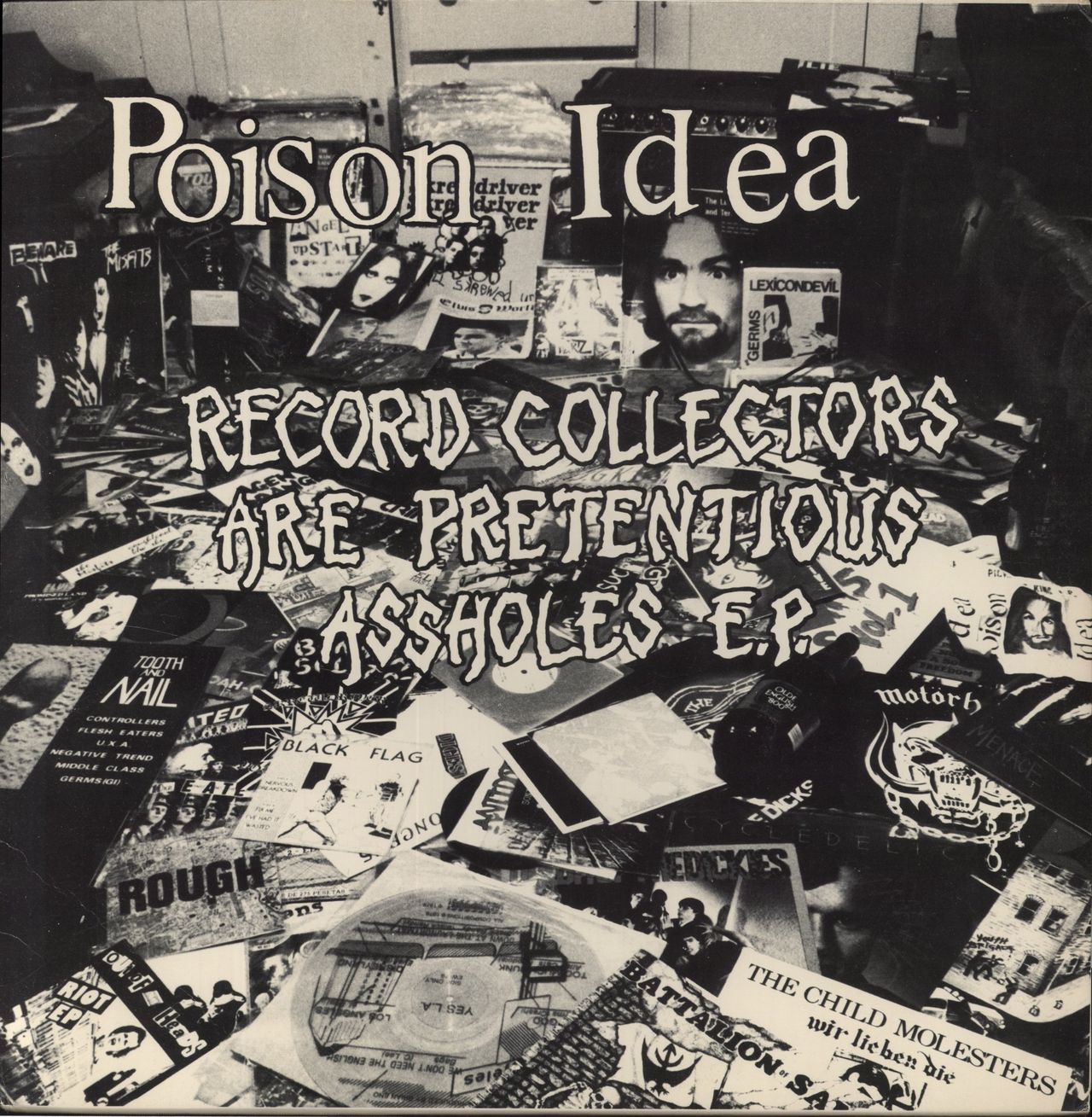 POISON IDEA Record Collectors Are Pretentious Assholes E.P. (Original first 1985 US 8-track 12" EP, pressed on Red Vinyl. The American hardcore punk band's second EP. Picture sleeve featuring a photo of guitarist Pig Champion's record collection as the cover. Includes lyric inner. The sleeve shows some creasing on the bottom left corner but otherwise reveals little of its age, with just very light general wear. The vinyl displays just a couple of cosmetic marks, which have been played through and have no impact on play. A hard to find punk rarity!)***Limited to only 1000 copies***