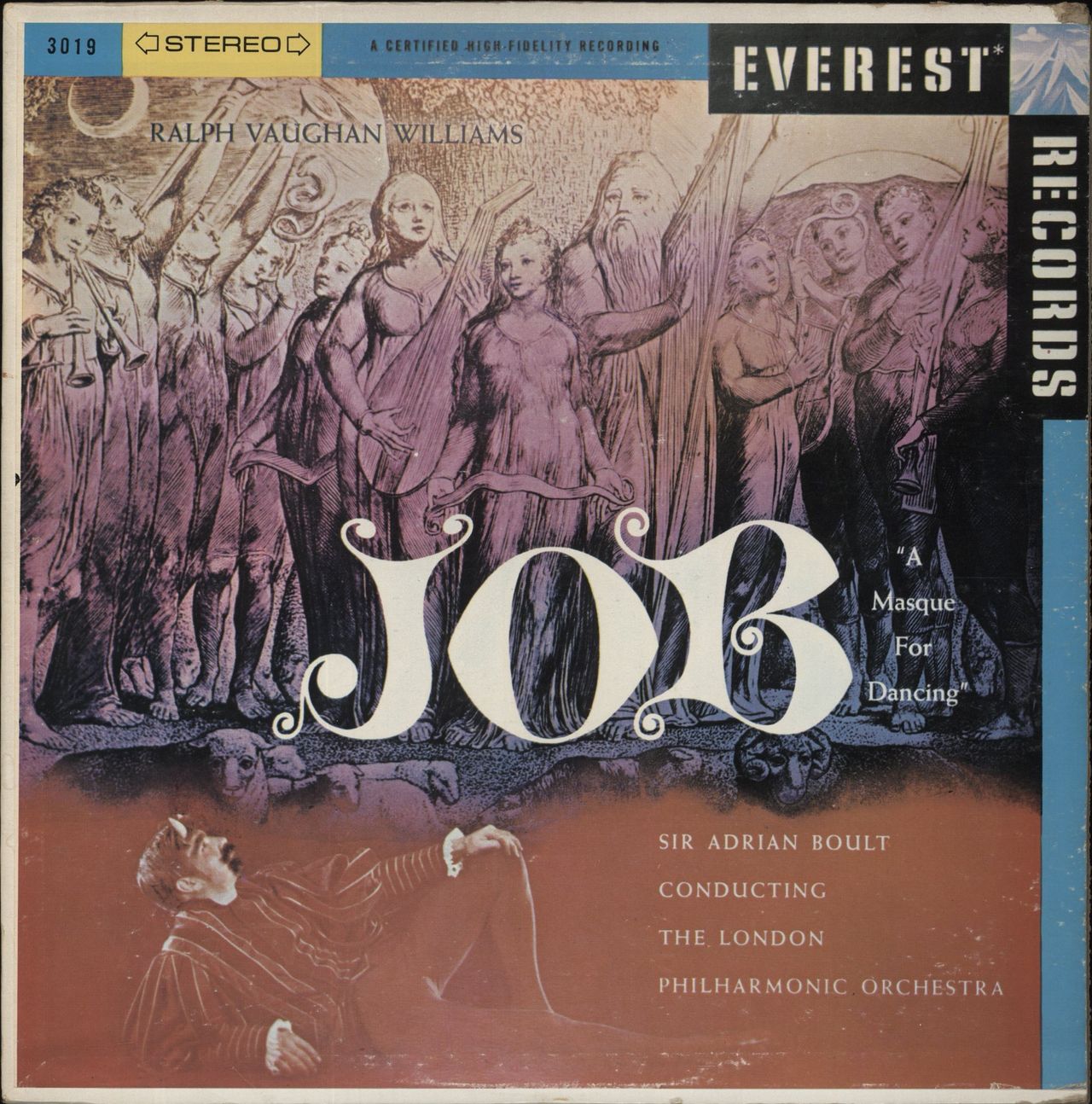 SIR ADRIAN BOULT conducting THE LONDON PHILHARMONIC ORCHESTRA Vaughan Williams: Job "A Masque For Dancing" (1972 US 9-track stereo vinyl LP on the blue & red Everest label, pasted picture sleeve. The sleeve shows light wear and the vinyl appears barely played SDBR-3019)