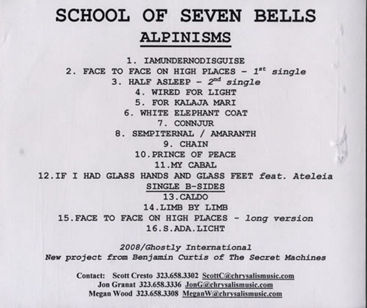 SCHOOL OF SEVEN BELLS Alpinisms (Official 2008 US Chyrsalis