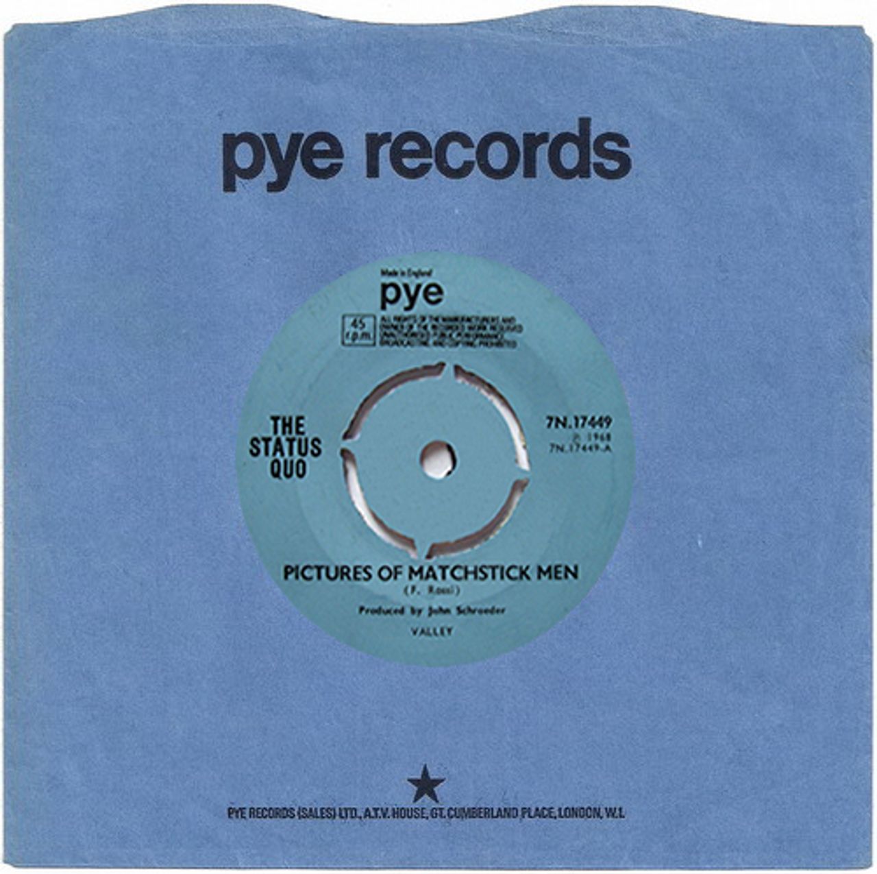 THE STATUS QUO Pictures Of Matchstick Men (1968 UK 7" vinyl single with intact four prong centre, also including Gentleman Joe's Sidewalk Cafe, Pye Records company die-cut paper sleeve. The vinyl on this copy remains in excellent condition with just a few hairlines to show for its age 7N17449)