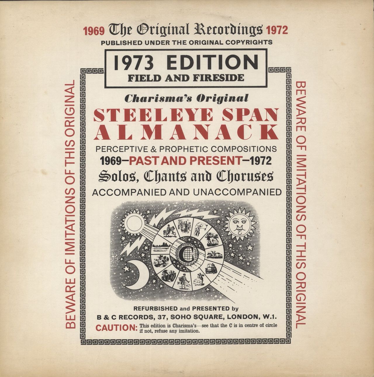 STEELEYE SPAN Almanac (1973 UK large 'Madhatter' label 11-track LP with 'B&C Records' perimeter label text, a nice overview of early material from one of the most successful groups of the British folk revival. The sleeve shows just a little light shelfwear & the vinyl remains in Excellent condition with minimal play CS12)