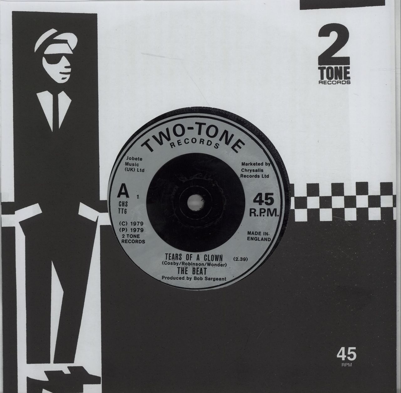 THE BEAT Tears Of A Clown (1979 UK injection moulded 7" vinyl single, also including Ranking Full Stop, Two-Tone company die-cut paper sleeve CHSTT6)