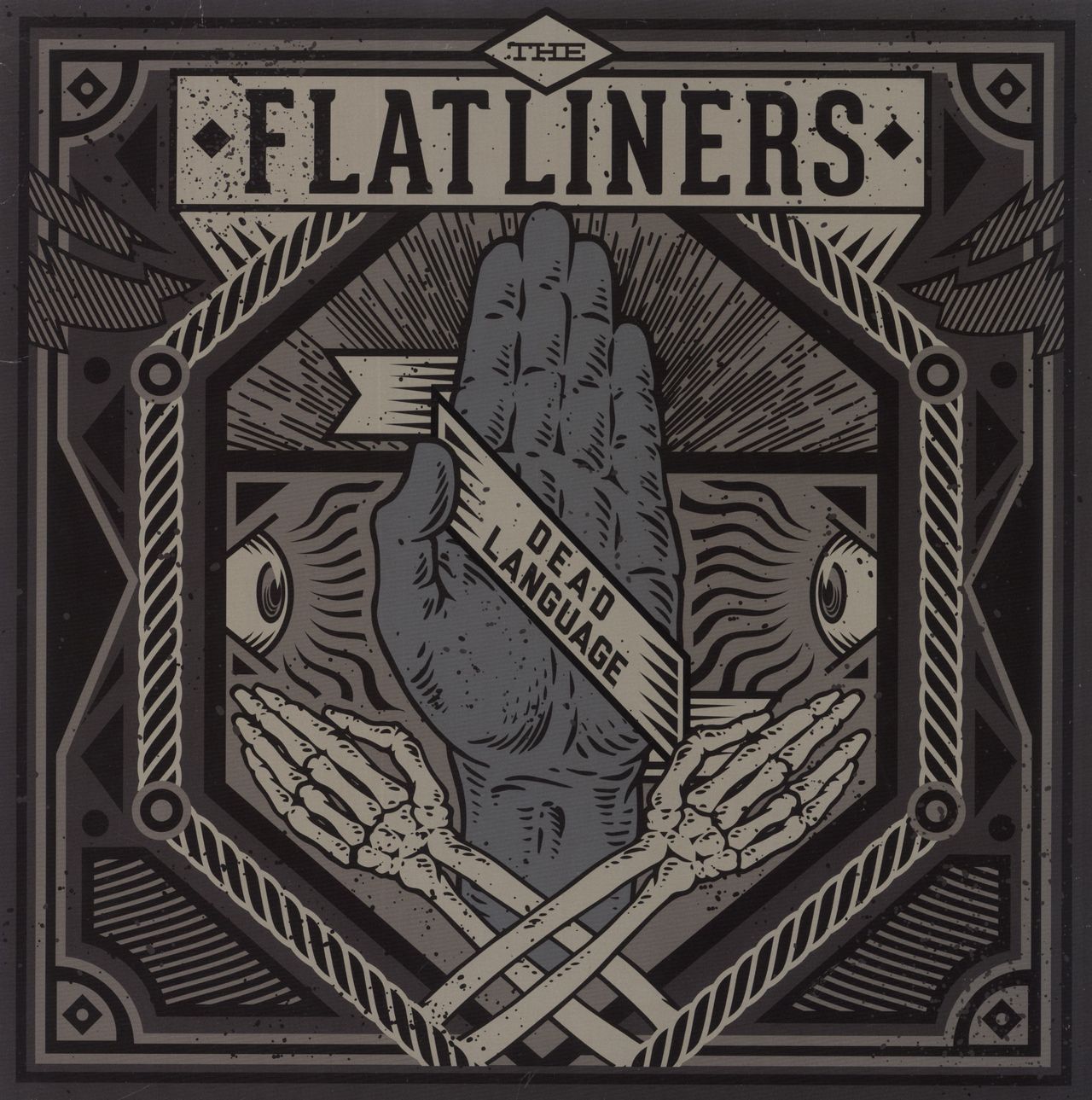 THE FLATLINERS Dead Language (2013 US 13-track vinyl LP, the fourth album from the Punk rock/ska punk band from Richmond Hill and Brampton, Ontario, Canada, picture sleeve with fold out lyric/artwork poster. The sleeve has a couple of light corner creases and the vinyl looks seldom played FAT917)