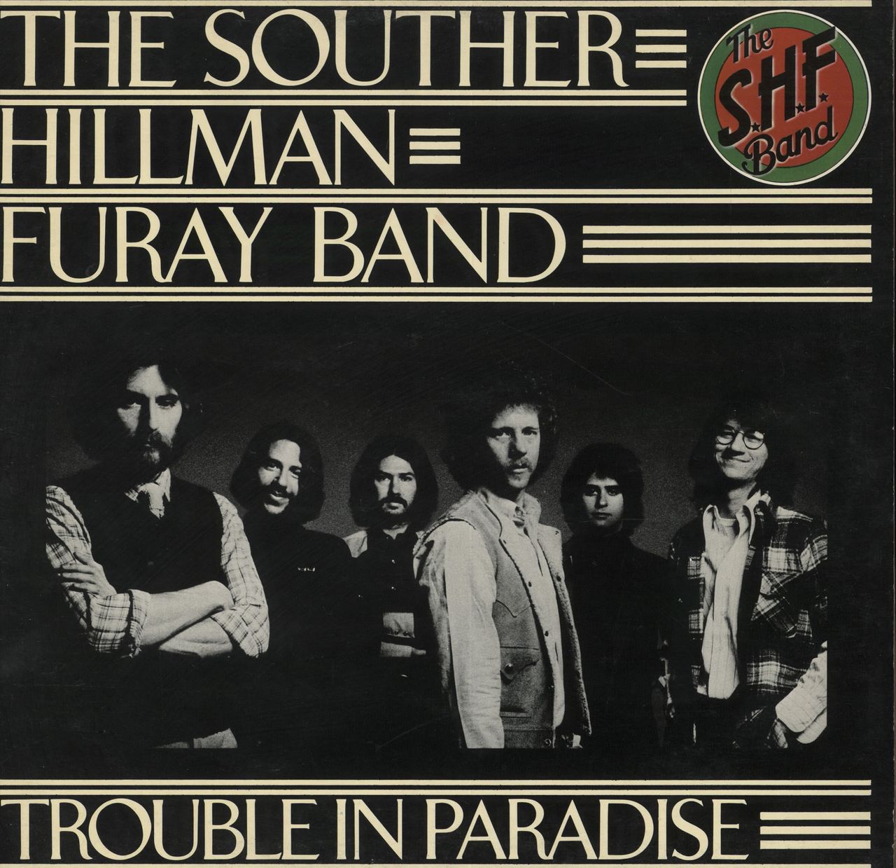 THE SOUTHER HILLMAN FURAY BAND Trouble In Paradise (1975 UK 9-track vinyl LP, picture sleeve with credits inner. The sleeve shows light wear with a crease to the inner, whilst the vinyl has just a few light scuffs leaving it Excellent K53013)