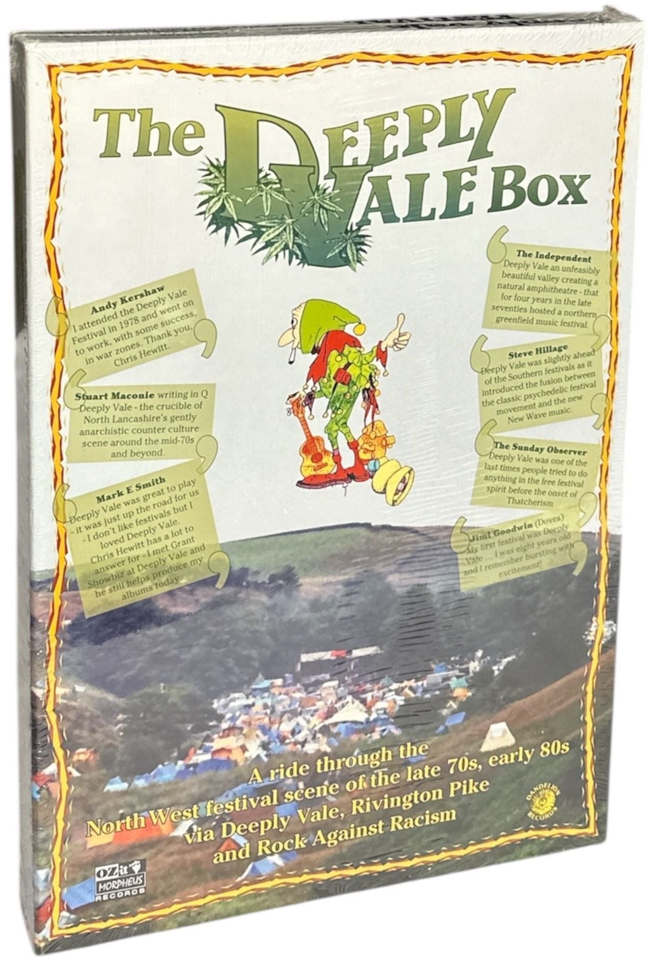 VARIOUS-PROG & PSYCH The Deeply Vale Box (2014 UK 107-track SIX DISC set - a ride through the North West festival scene of the late 70s, early 80s via Deeply Vale, Rivington Pike and Rock Against Racism, with such artists as The Ruts, Steve Hillage, The Fall, Tractor, Nik Turner's Sphynx and many more, a 272 page fully illustrated book, and joss sticks! The discs are in BRAND NEW condition housed in the boxwhich remains sealed within its original shrinkwrap OZITDAN976)