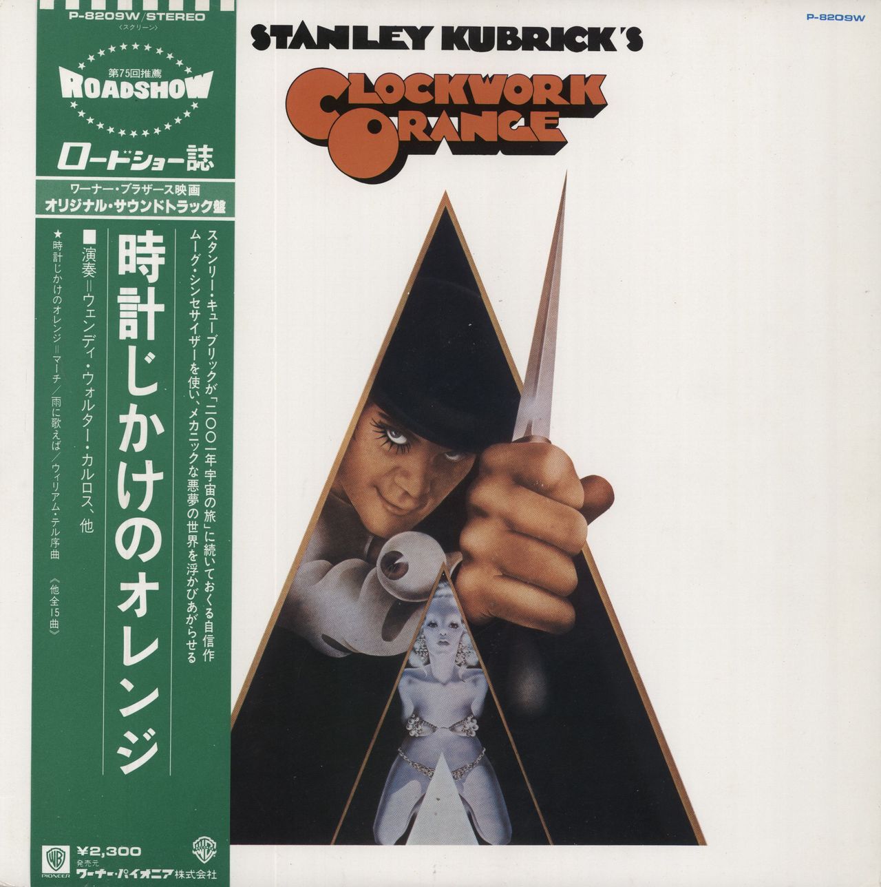 WALTER CARLOS A Clockwork Orange (1975 Japanese 'Burbank' label issue of the 1972 15-track vinyl LP featuring the soundtrack music for the controversial Stanley Kubrick film starring Malcolm McDowell. The back-pasted picture sleeve has some shelfwear to the corners and comes with the double-sided Japanese insert plus the green Roadshow series obi-strip while the vinyl looks barely played P-8209W)