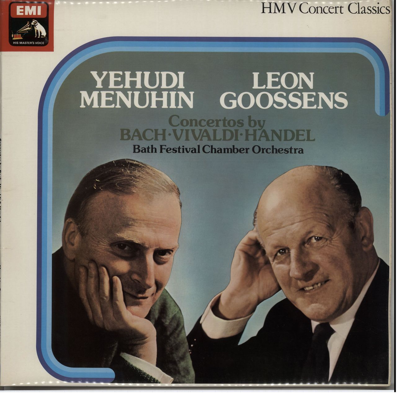 YEHUDI MENUHIN directs THE BATH FESTIVAL CHAMBER ORCHESTRA Concertos By Bach, Vivaldi & Handel (1979 UK stereo vinyl LP, also starring Leon Goossens on Oboe, fully laminated picture sleeve. The sleeve shows minimal wear and the vinyl is Near Mint SXLP30294)