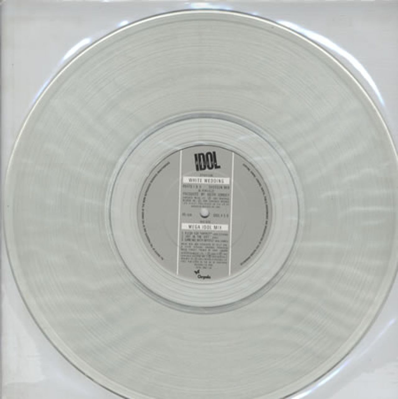 BILLY IDOL White Wedding (1985 UK limited edition 2-track CLEAR vinyl 12" single featuring Parts I & II - Shotgun Mix 8:20 plus Mega Idol Mix 7:56, housed in a blue artist/title printed clear PVC sleeve IDOLX5)
