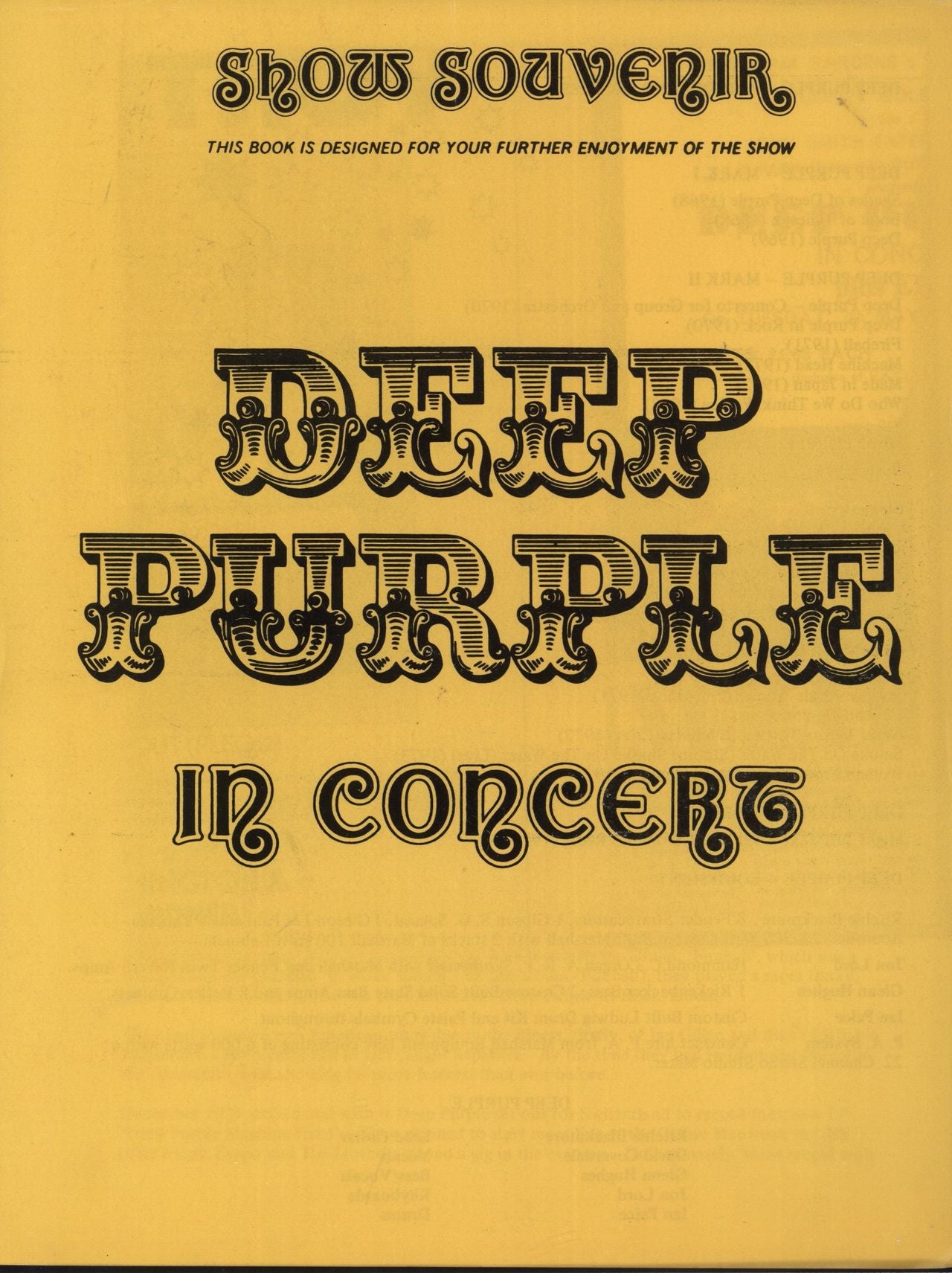 Deep Purple Show Souvenir In Concert + ticket stub UK Tour programme