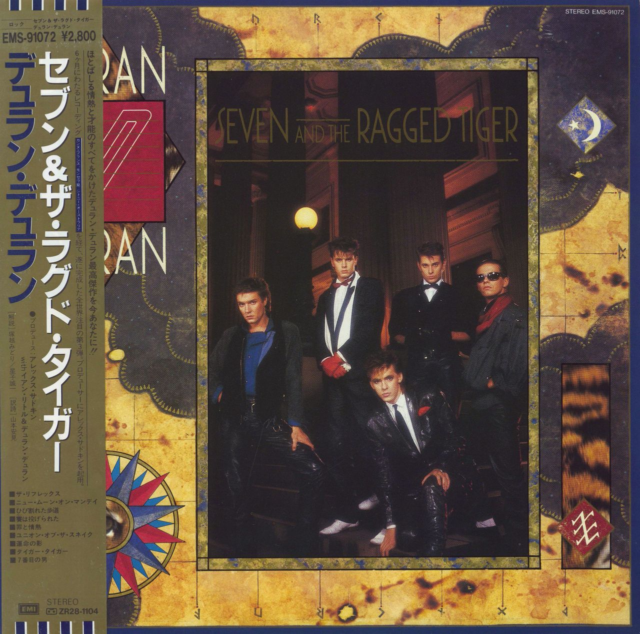 DURAN DURAN Seven And The Ragged Tiger (1983 Japanese EMI label issue 9-track vinyl LP, housed in a full colour picture sleeve. This rare variant includes the 4-page glossy Japanese text biography/lyric insert, gold obi-strip, fold out poster plus the hard to find deluxe 22-page LP sized Calendar/Notebook. A wonderful and collectable set. EMS-91072)