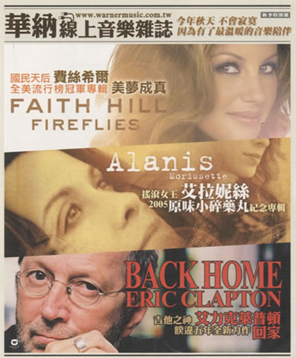 ERIC CLAPTON Back Home (2005 Taiwanese promotional set of two identical 4-page 5.5" x 6.5" handbills featuring a review of EC's Back Home, Faith Hill's Fireflies and Alanis' acoustic version of Jagged Little Pill, each review features mini-albumartwork and release date information)