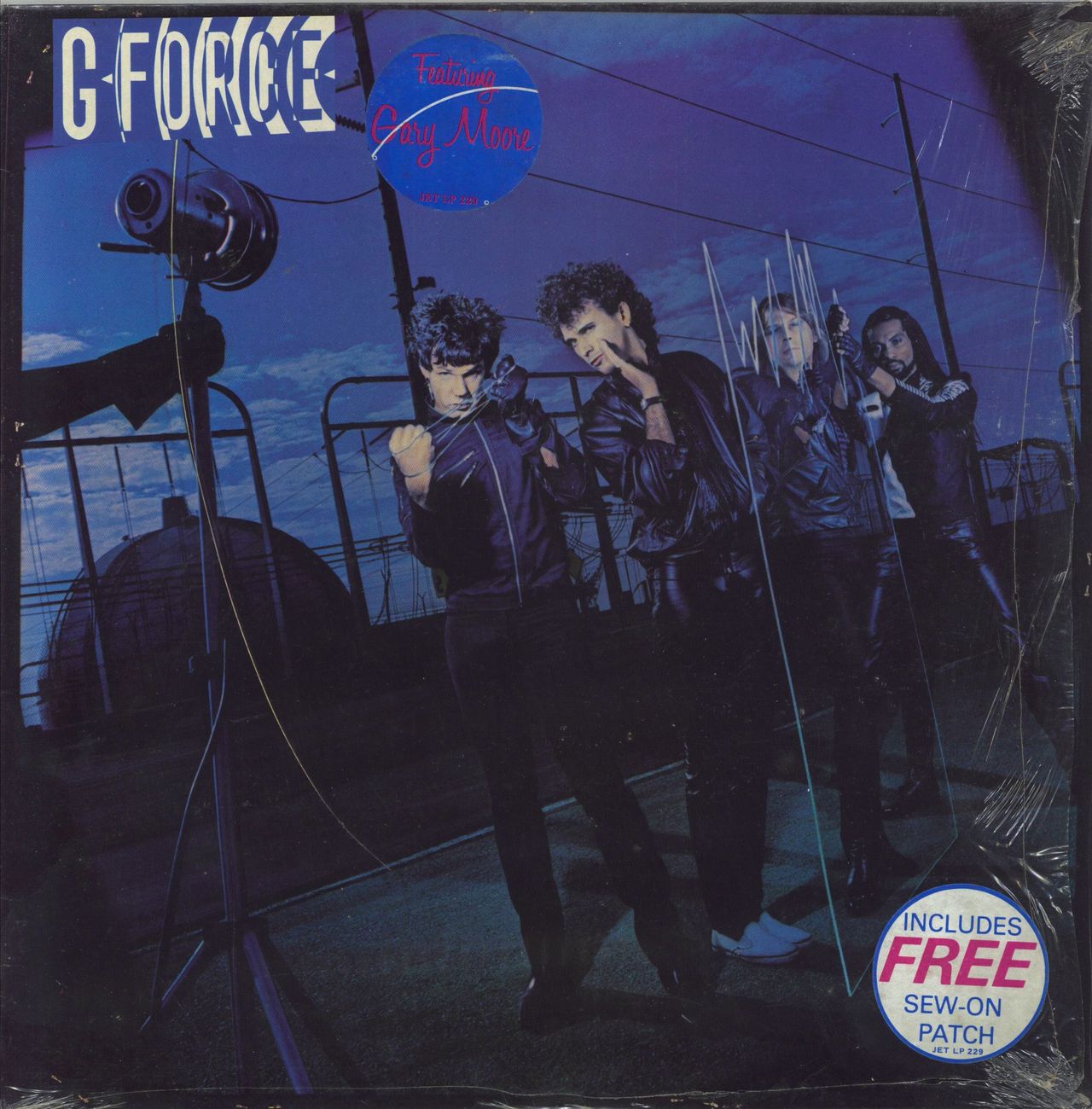 G FORCE featuring GARY MOORE G Force (1980 UK 9-track vinyl LP, picture sleeve with picture/lyric inner and 'win one of Gary Moore's guitars' competition flyer. The sleeve shows a little bend but is still in its hype-stickered shrinkwrap and the vinyl is Near Mint JETLP229)