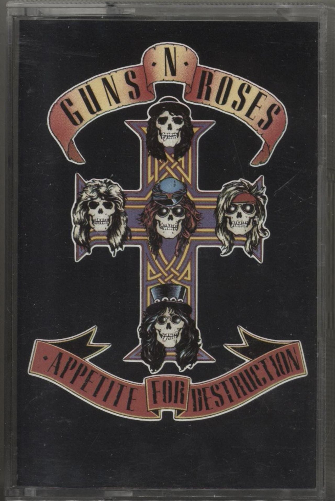 GUNS N ROSES Appetite For Destruction (1987 German 12-track cassette album including the classics Welcome To The Jungle and Sweet Child O' Mine, housed in a standard cassette case with picture sleeve inlay)