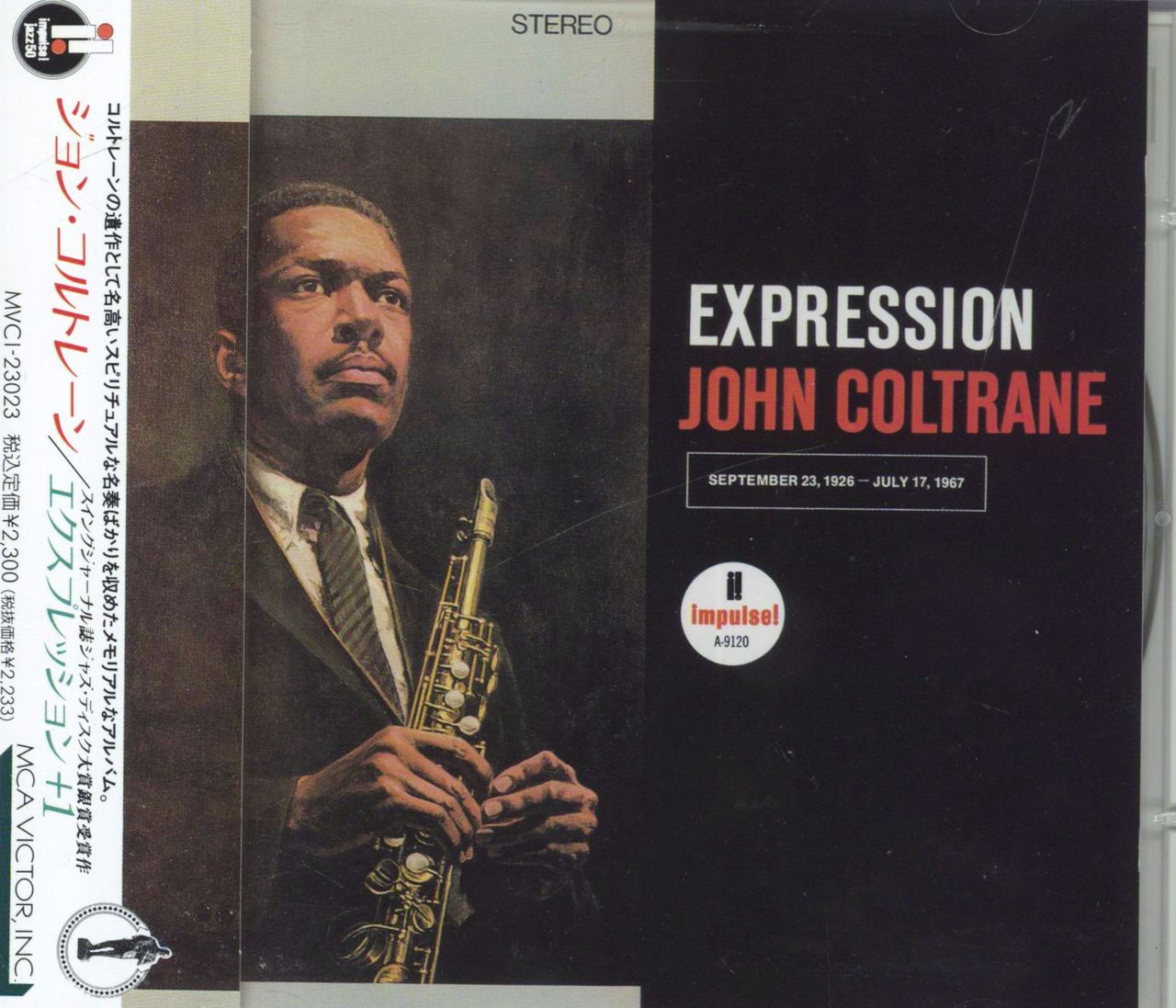 JOHN COLTRANE Expression (1991 Japanese 5-track remastered stereo CD on Impulse!, first released in 1967 & recorded at the Van Gelder studios with Alice Coltrane, Jimmy Garrison & Rashied Ali. Includes the bonus track 'Number One' [from Jupiter Variations], complete with the Japanese booklet & obi-strip MVCI-23023)