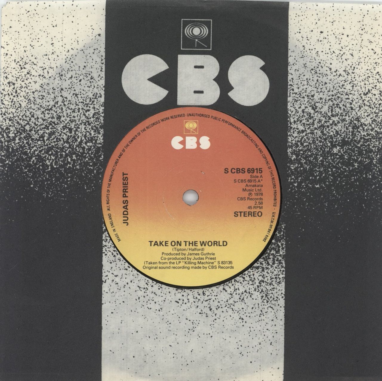 JUDAS PRIEST Take On The World (1978 UK solid centre 7" vinyl single, also including Starbreaker, CBS company die-cut paper sleeve SCBS6915)