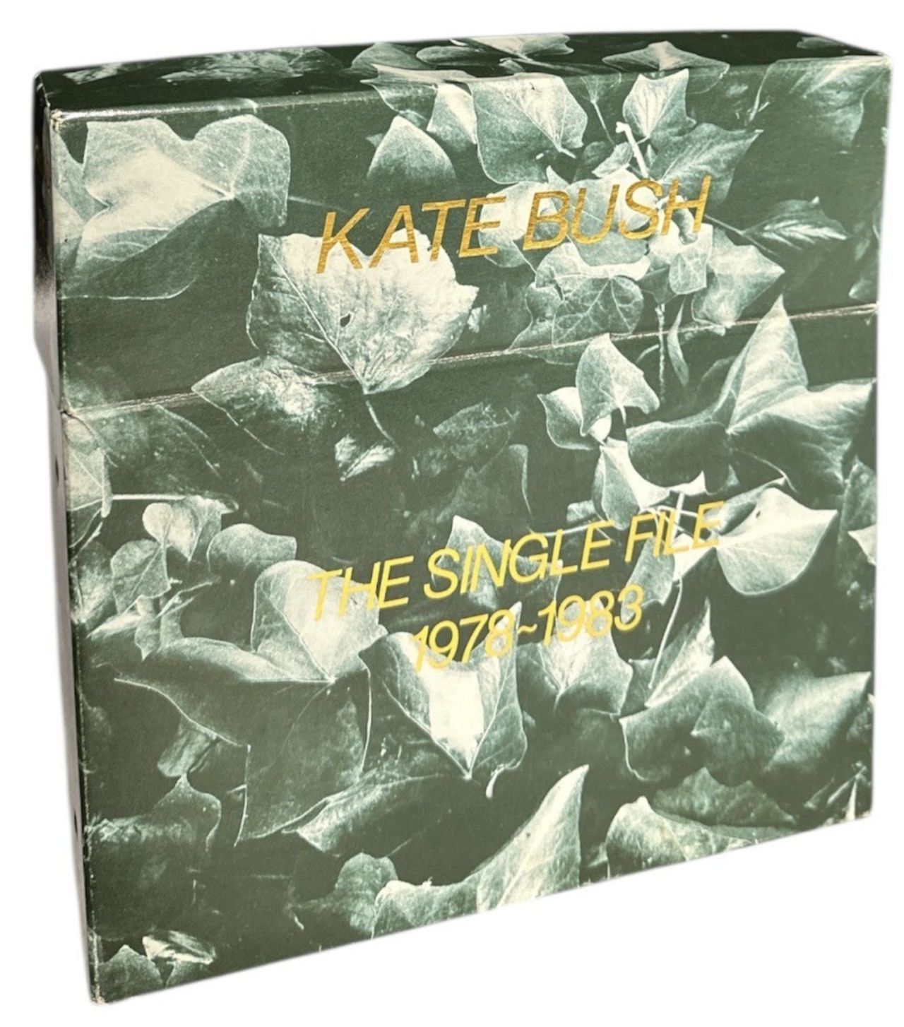 KATE BUSH The Single File 1978-83 (Scarce 1983 UK 7" vinyl single box set. This comprehensive issue, now over forty years old, comprises thirteen 7" singles, each in their own picture sleeve, housed within an gold debossed fliptop box complete with 16-page picture and lyric booklet. The box displays some minor scuffing and wear to the corners and edges. The sleeves are Excellent with some minor edge wear and light seam splitting to 'The Man With The Child In His Eyes' and 'The Dreaming' and vinyl remain in excellent condition with just the odd cosmetic mark and light signs of play KBS1)