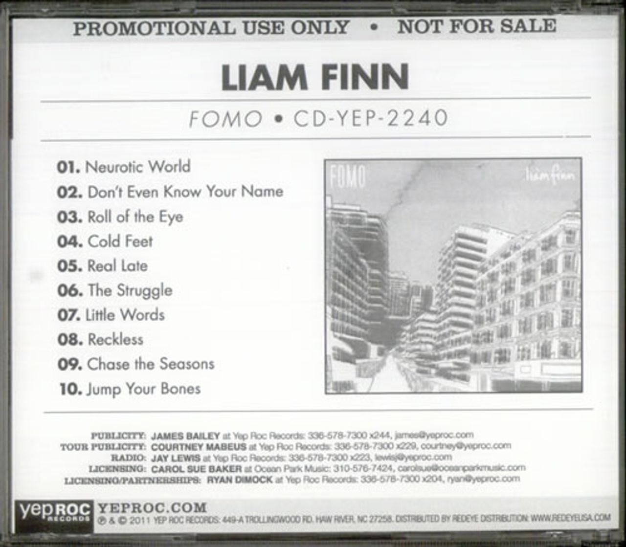 LIAM FINN Fomo (2011 US 10-track advance promotional CD for the