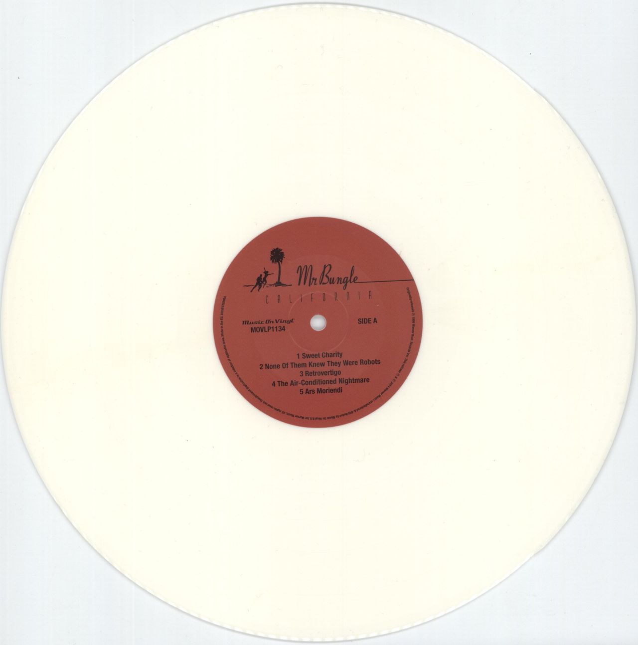 MR. BUNGLE California (Limited Edition 2020 UK/EU 10-track LP pressed on 180gram White Vinyl, the eclectic 1999 third album from the experimental Alt-Rock band led by the inimitable Mike Patton, which still sounds just as wonderfully weird today! Comes housed in a deluxe picture sleeve which is individually number stamped in silver on the back, complete with the album credit insert. The sleeve & vinyl are Near Mint, still in the gold hype stickered resealable bag. Limited to2000 copies only MOVLP1134)