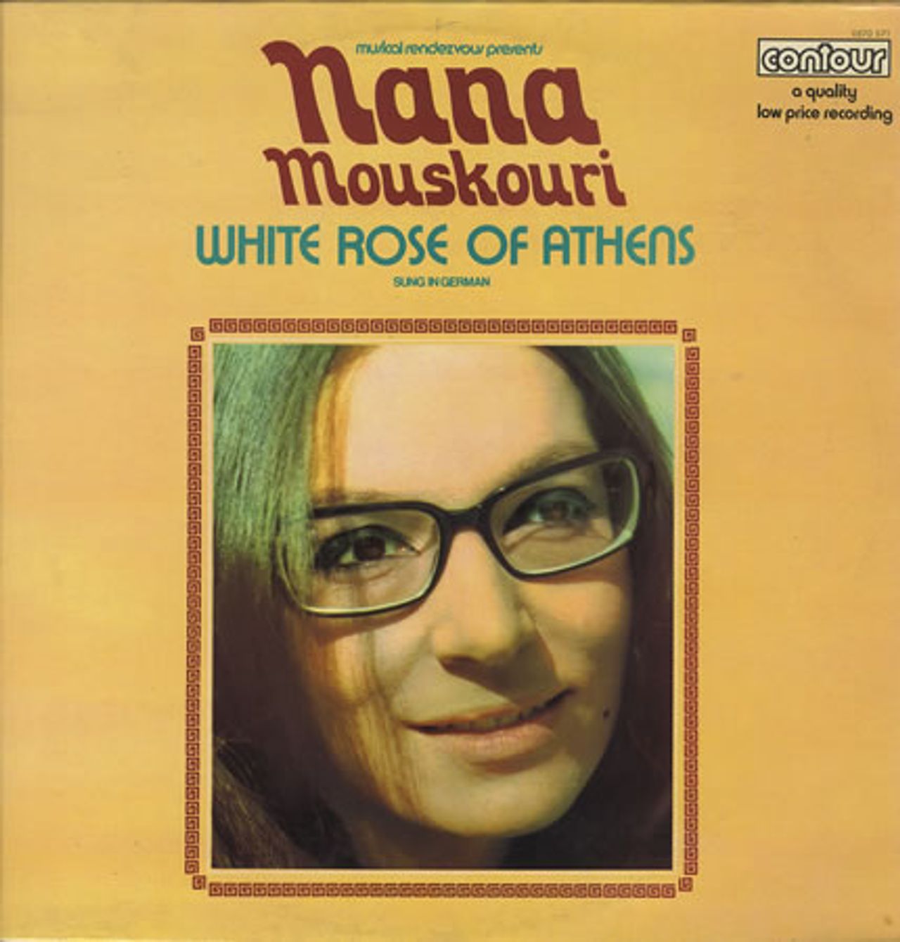 NANA MOUSKOURI White Rose Of Athens (1971 UK issue of the 1967 12-track LP with all songs sung in German, fully laminated picture sleeve. A truly multi-national affair with a Greek singer singing in German, record pressed in Switzerland and sleeve printed in Italy for the UK market! The sleeve shows minimal shelfwear & the vinyl remains in excellent condition with few signs of play)