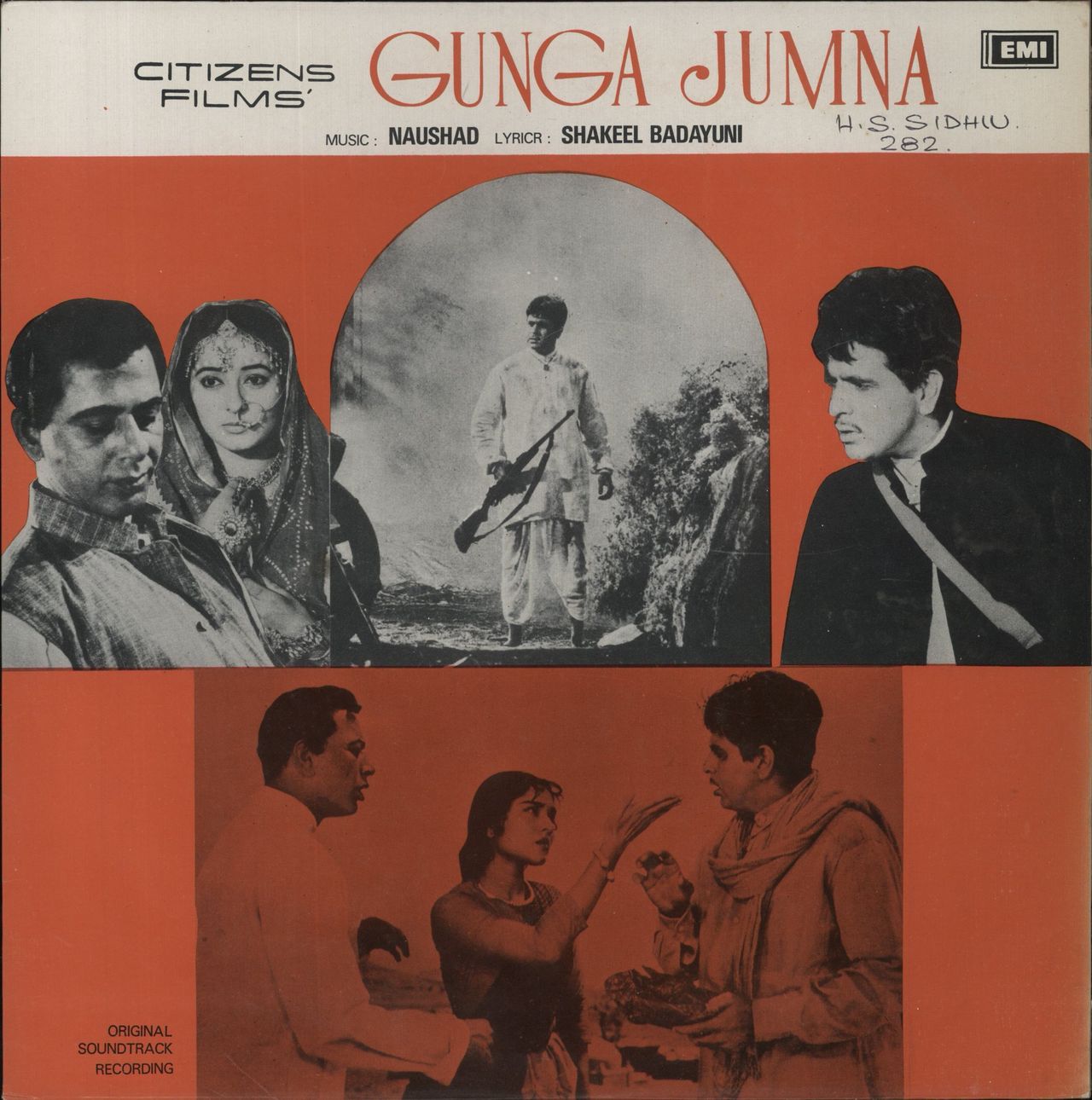 NAUSHAD Gunga Jumna (1978 Indian 8-track vinyl LP, Naushad's movie score featuring performances by Mohd. Rafi, Lata Mangeshkar and Hemant Kumar, picture sleeve. The sleeve has a name annotation to the front and a little discolouration to the reverse, whilst despite annotations to the labels, the vinyl is Excellent with very little sign of play ECLP5442)