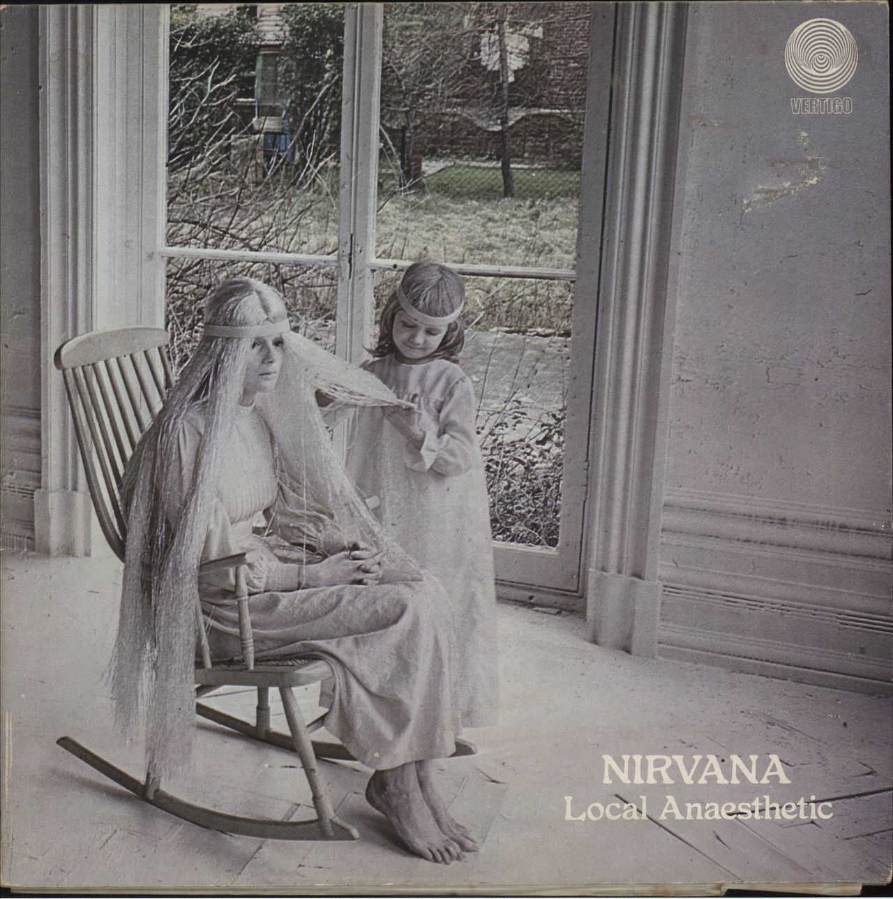 NIRVANA Local Anaesthetic (Rare original 1971 UK stereo LP on the large 'swirl' label, the fourth album to be issued under the Nirvana name & the first post-Island outing, housed in a fantastic Keef-designed gatefold picture sleeve complete with the polly-lined 'swirl' inner. The cover has some unfortunate marks from a sticker removal, most prominent in the top right corner. If it wasn't for these cosmetic blemishes, the cover would grade much higher above the FAIR mark. The vinyl is super clean & EXCELLENT with very few signs of any play, making for a real advantageous buy for the collector)