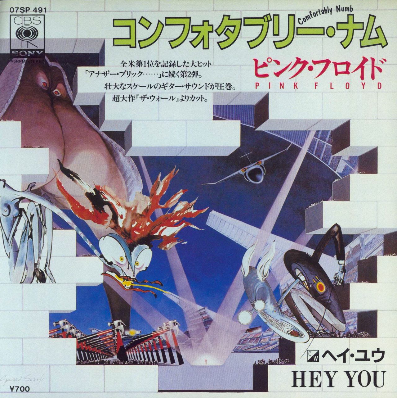 PINK FLOYD Comfortably Numb (Rare original 1979 Japanese wide centred 7" vinyl single, also including Hey You, with a unique picture insert printed with English song lyrics on the reverse, and in a die-cut CBS/Sony company sleeve. The insert &the vinyl appear Near Mint 07SP-491)