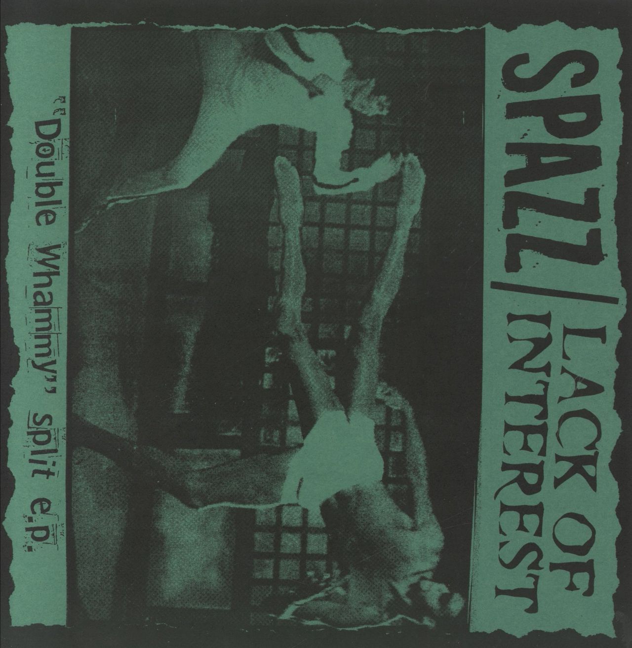 SPAZZ Double Whammy (1997 US 12-track 7" vinyl split EP, from American Powerviolence bands. Green variant wrap-around picture sleeve with lyrics printed on the inside. Both sleeve and vinyl shows minimal signs of wear and play DS10)