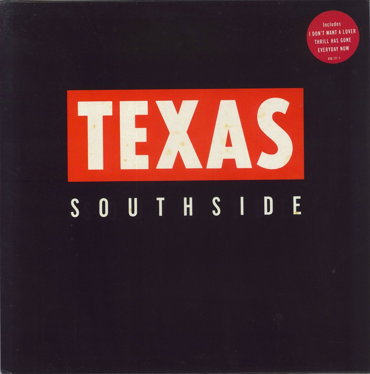 TEXAS Southside (1989 UK 10-track vinyl LP, including I Don't Want A Lover and Everyday Now, complete with illustrated lyric inner, picture sleeve with song hype sticker. The sleeve has some genral wear with some foxing to the front, while thevinyl shows light evidence of play)